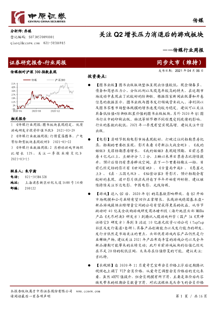 中原证券:传媒行业周报:关注Q2增长压力消退后的游戏板块.pdf