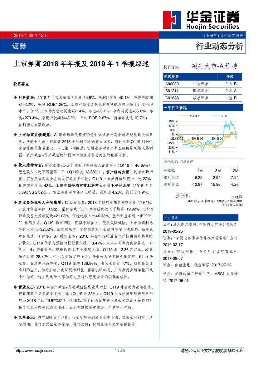 华金证券:上市券商2018年年报及2019年1季报综述.pdf