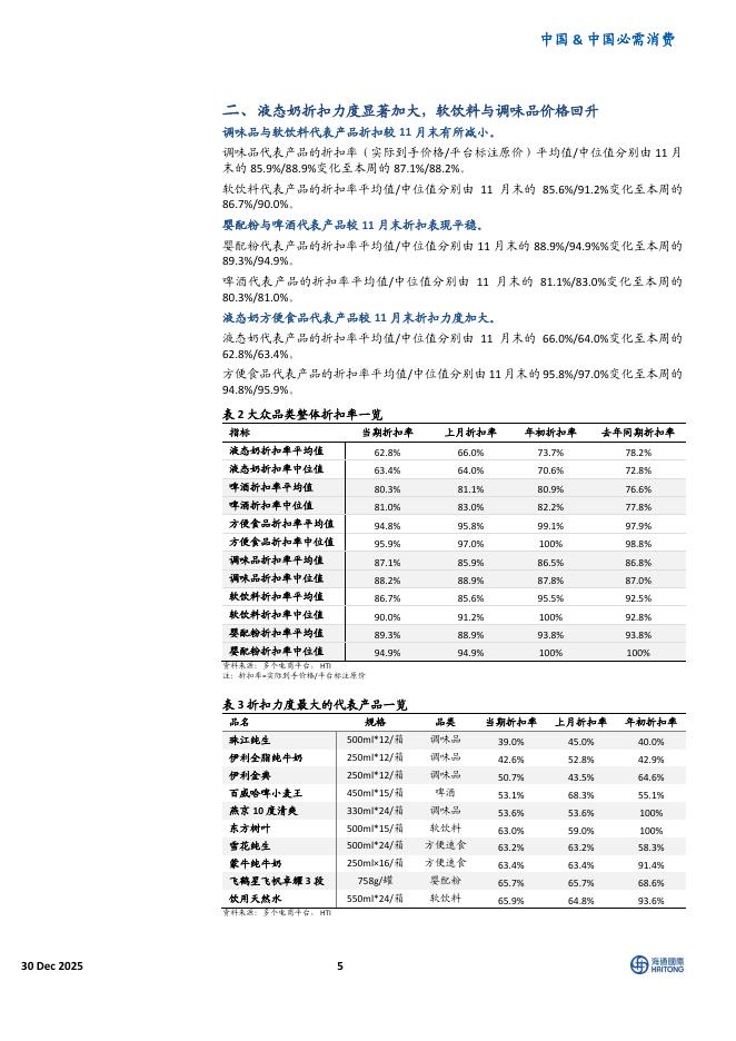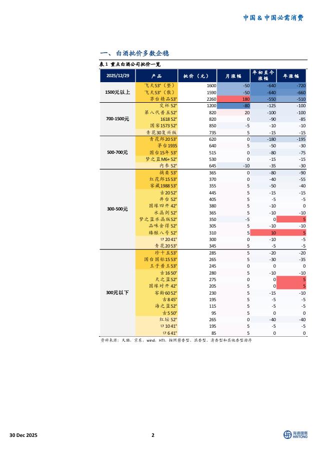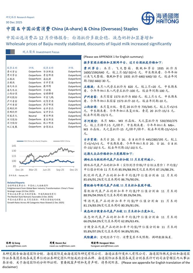 海通国际:中国必选消费品12月价格报告:白酒批价多数企稳,液态奶折扣显著增加.pdf