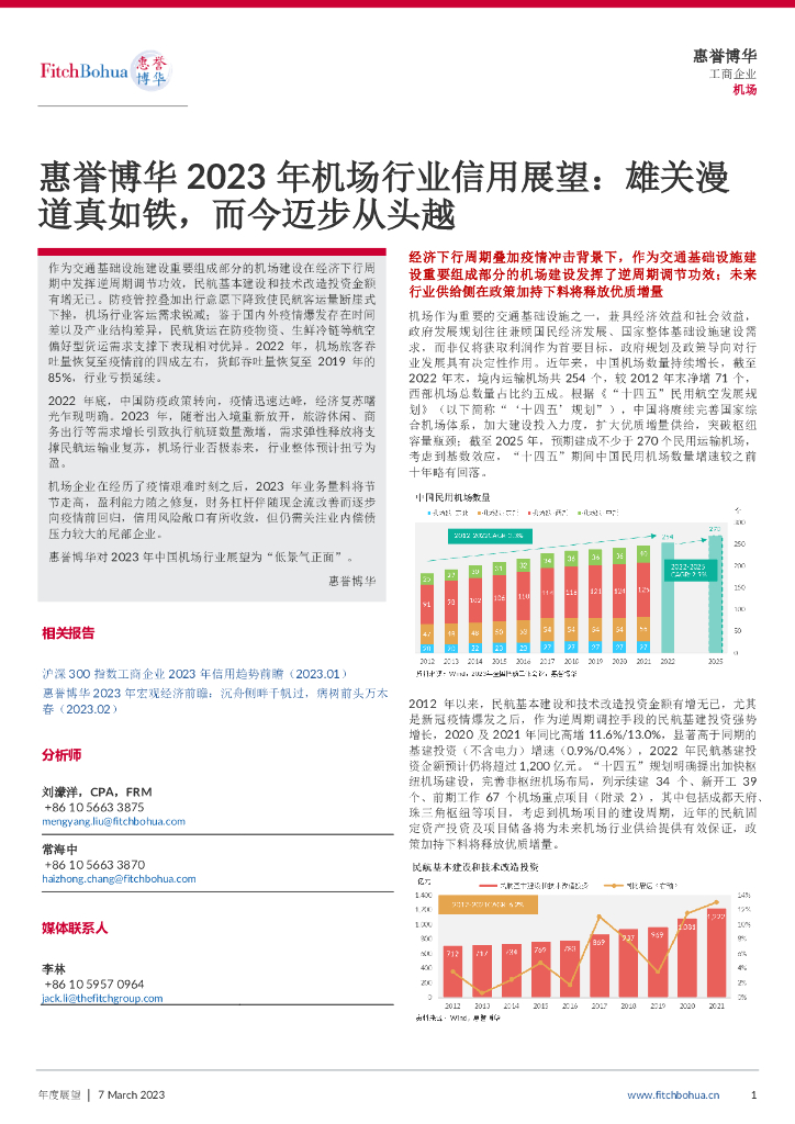 惠誉博华:2023年机场行业信用展望:雄关漫道真如铁,而今迈步从头越.pdf
