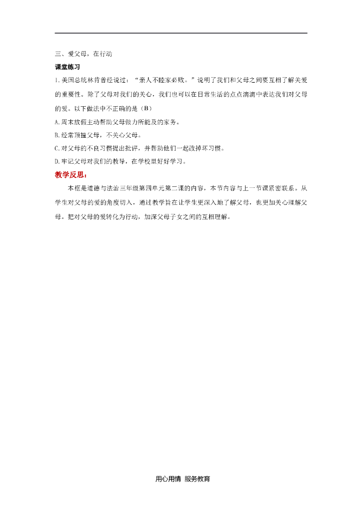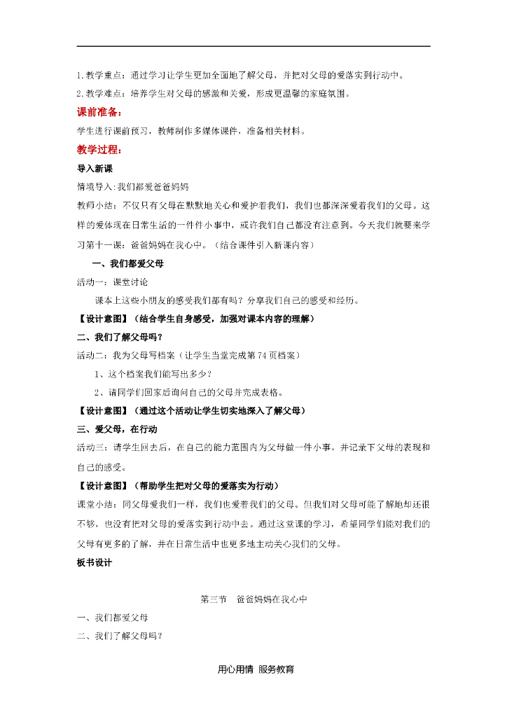2021三年级道德与法治上册 【教学设计】《爸爸妈妈在我心中》(道德与法治人教三上).doc