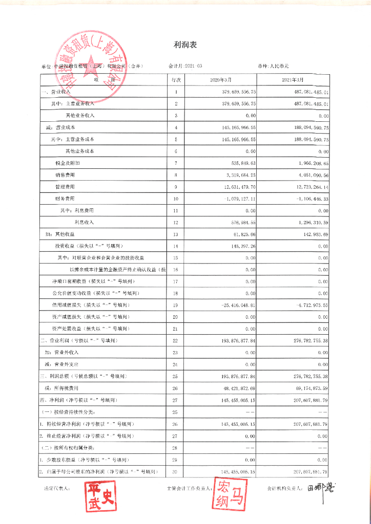 中建投融资租赁(上海)有限公司2021年一季度财务报表.pdf