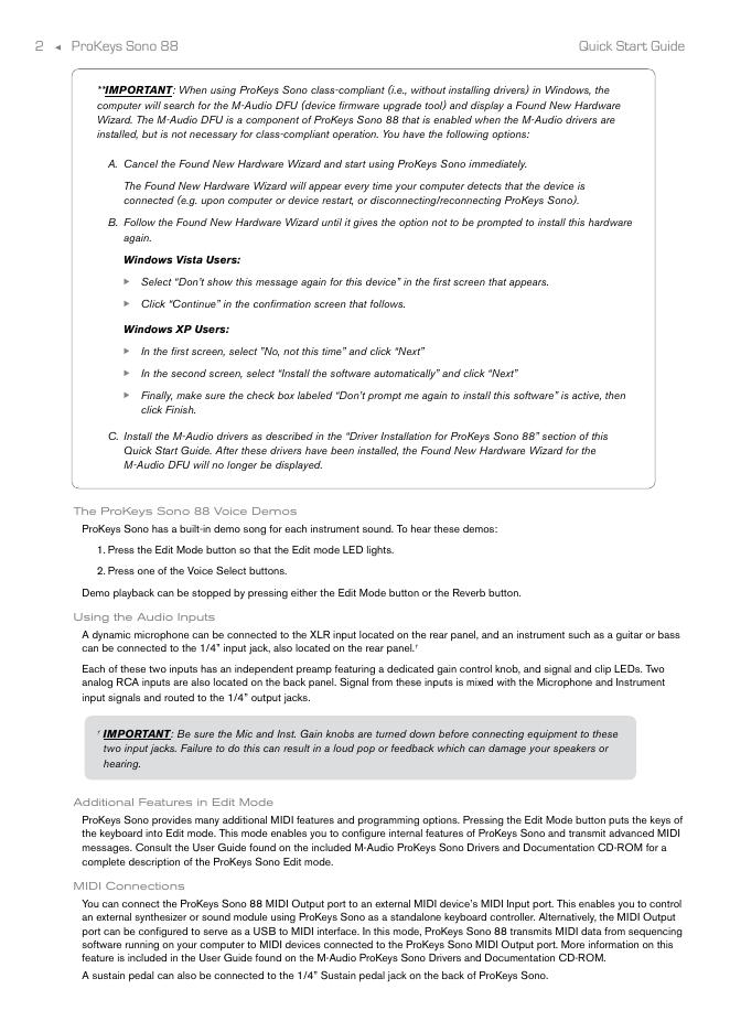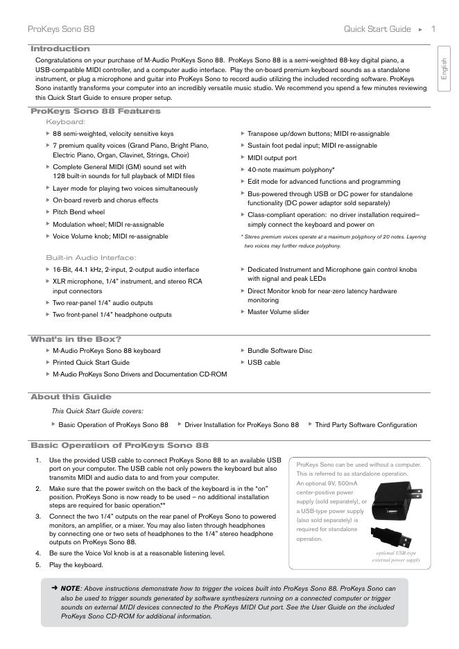 M-Audio ProKeys Sono 88快速入门指南.pdf