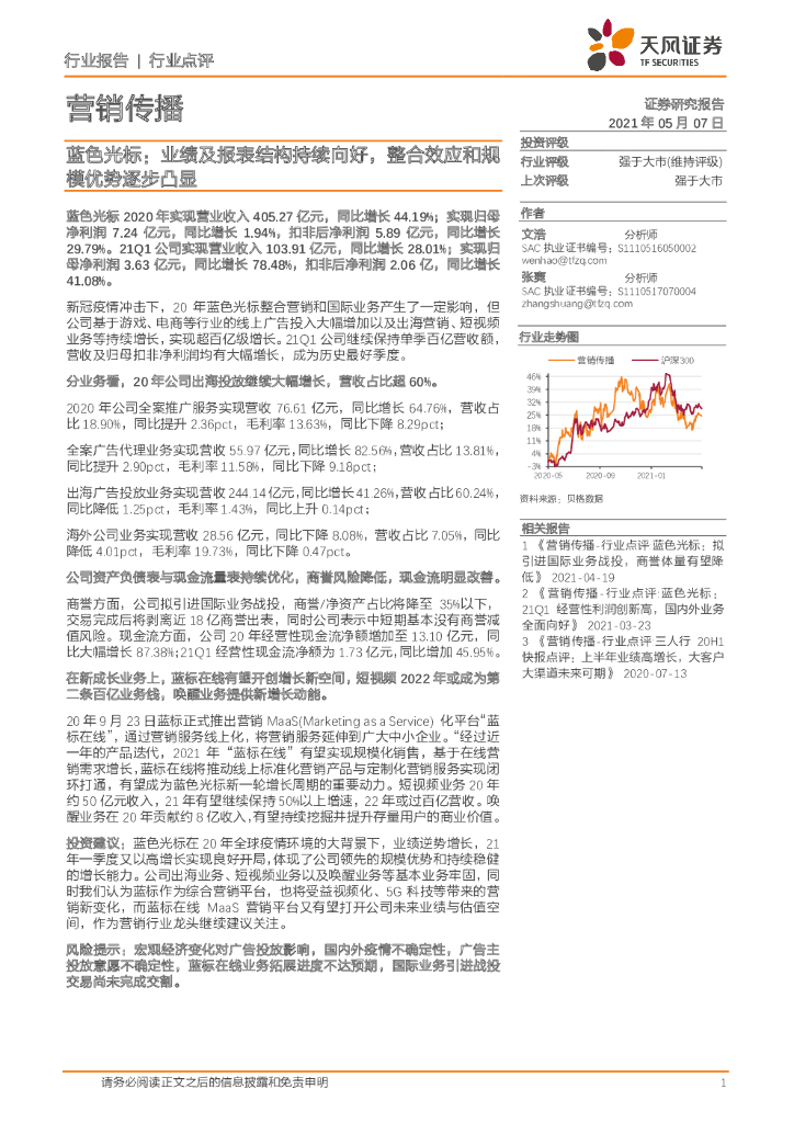 天风证券:营销传播行业点评:蓝色光标:业绩及报表结构持续向好,整合效应和规模优势逐步凸显.pdf