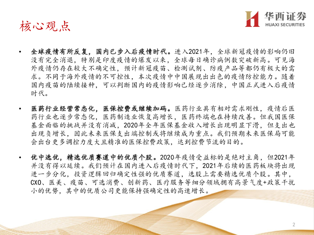 华西证券:医药行业2021年中期投资策略报告:2021年高端闭门投资峰会分论坛-后疫情时代,战略性看好医药黄金赛道上的优质个股.pdf