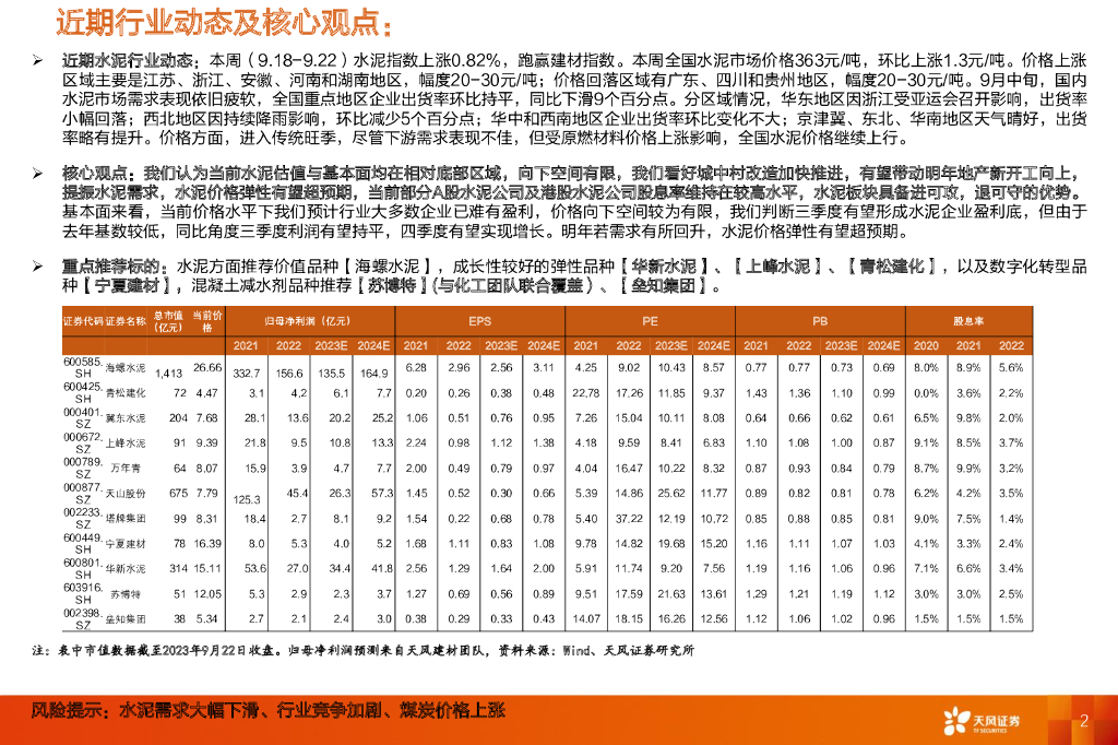 天风证券:水泥行业研究周报:华东水泥价格开启上涨.pdf