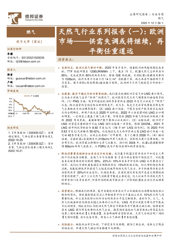 德邦证券:天然气行业系列报告(一):欧洲市场——供需失调或将继续,再平衡任重道远.pdf