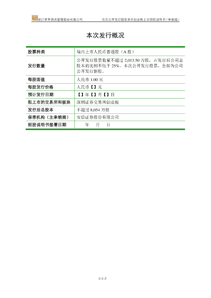 浙江君亭酒店管理股份有限公司深交所创业板IPO上市招股说明书.pdf