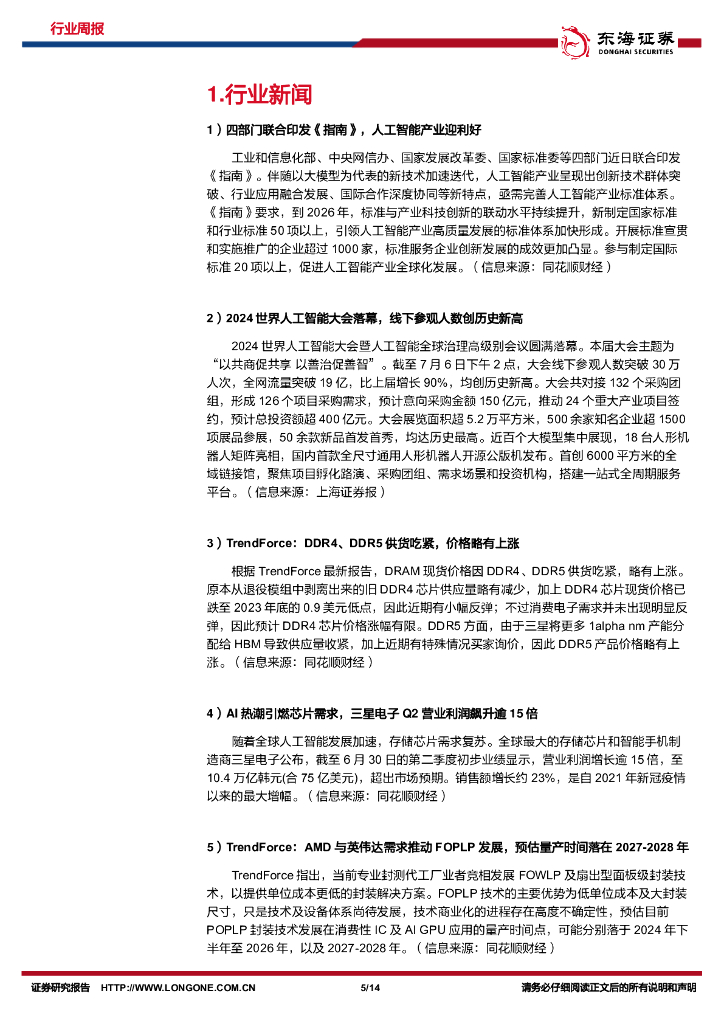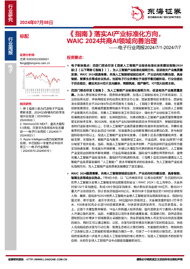 东海证券:电子行业周报:《指南》落实AI产业标准化方向,WAIC2024共商AI领域向善治理.pdf