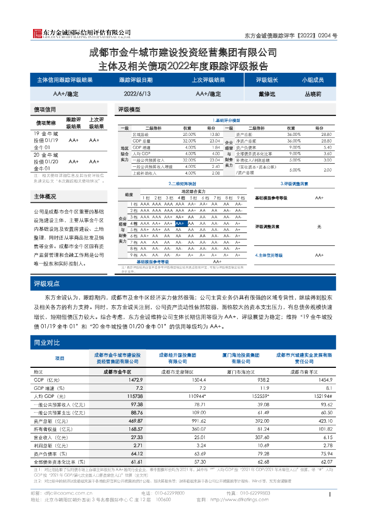 东方金诚:成都市金牛城市建设投资经营集团有限公司主体及相关债项2022年度跟踪评级报告.pdf