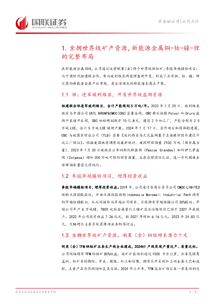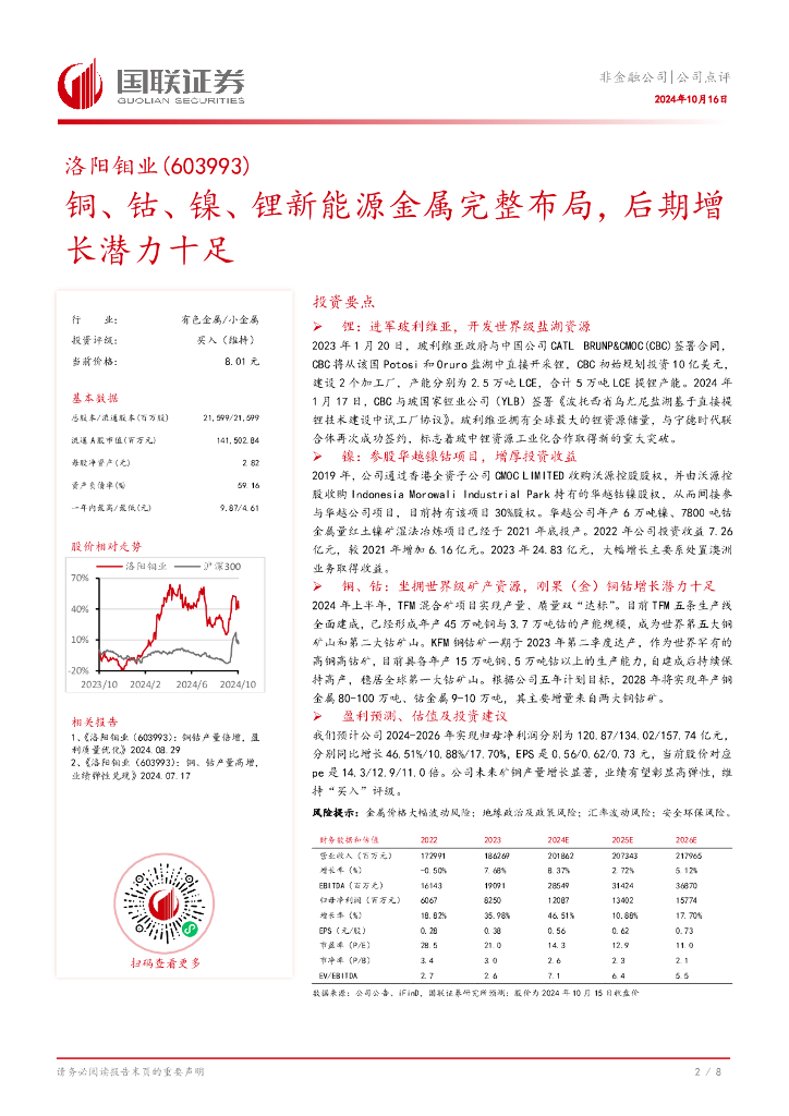 国联证券:洛阳钼业(603993)-铜、钴、镍、锂新能源金属完整布局,后期增长潜力十足.pdf