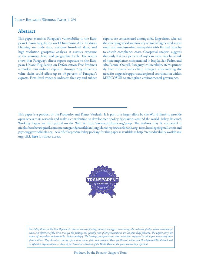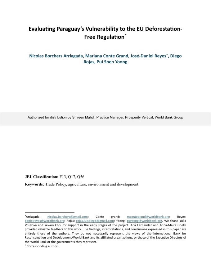 世界银行:评估巴拉圭在欧盟无森林砍伐监管下的脆弱性(英文版).pdf