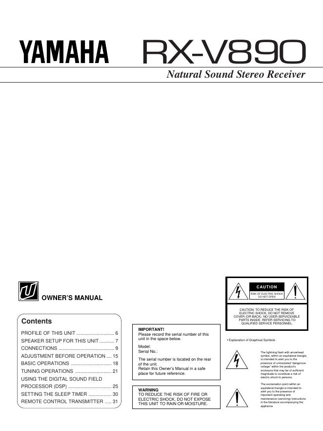 YAMAHA RX-V890 Natural Sound Stereo Receiver 用户手册.pdf