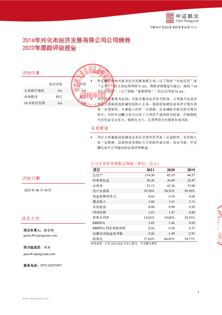 鹏元:2016年兴化市经济发展有限公司公司债券2022年跟踪评级报告.pdf