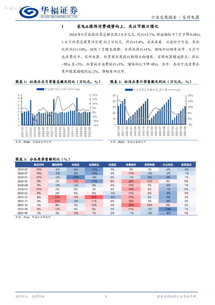 华福证券:家用电器行业24W37周观点:家电&服饰消费趋势向上,关注节假日催化.pdf