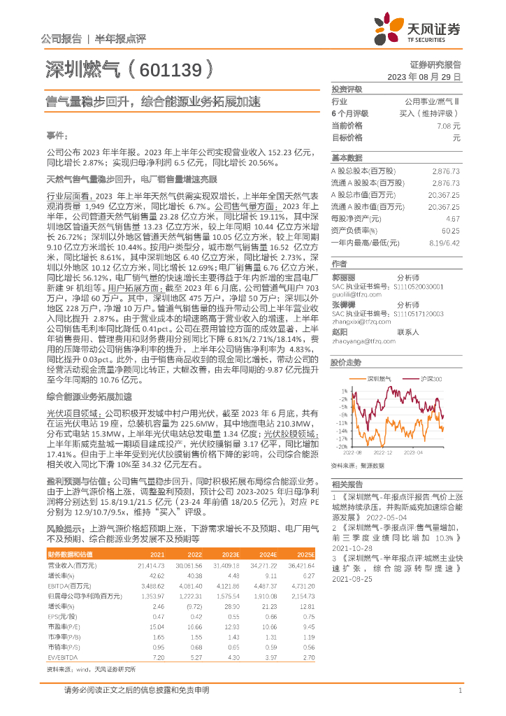 天风证券:深圳燃气(601139)-售气量稳步回升,综合能源业务拓展加速.pdf