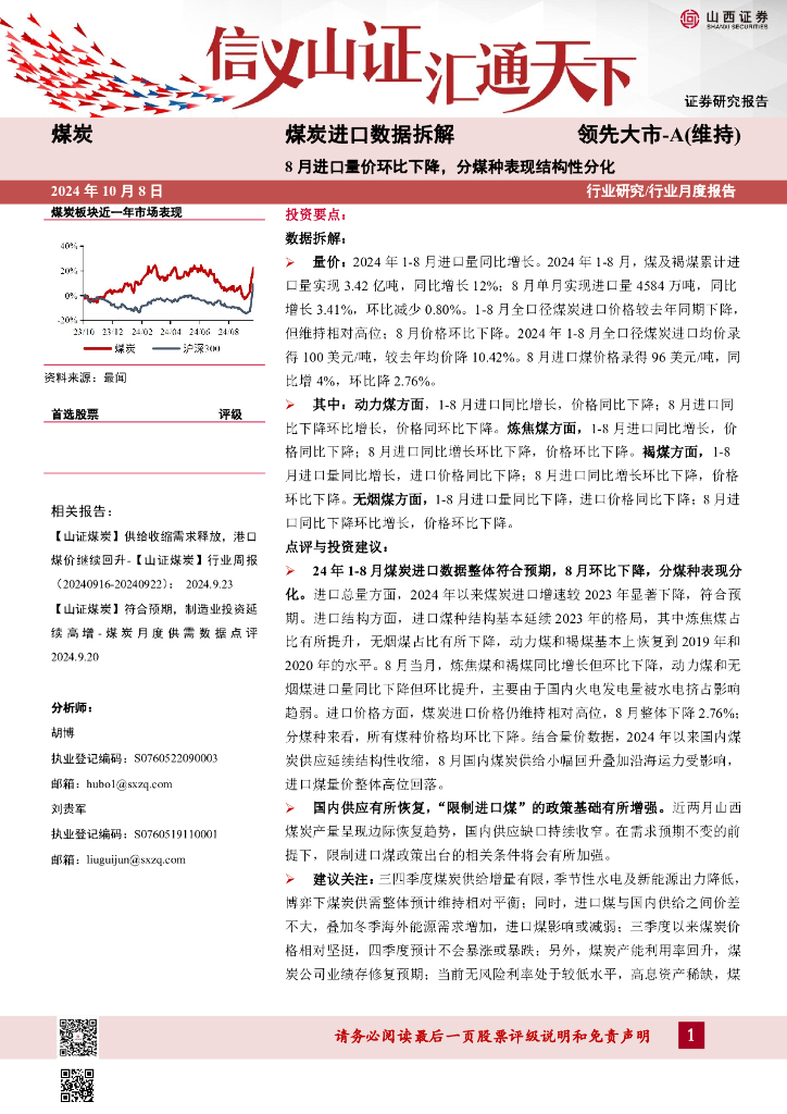山西证券:煤炭进口数据拆解:8月进口量价环比下降,分煤种表现结构性分化.pdf