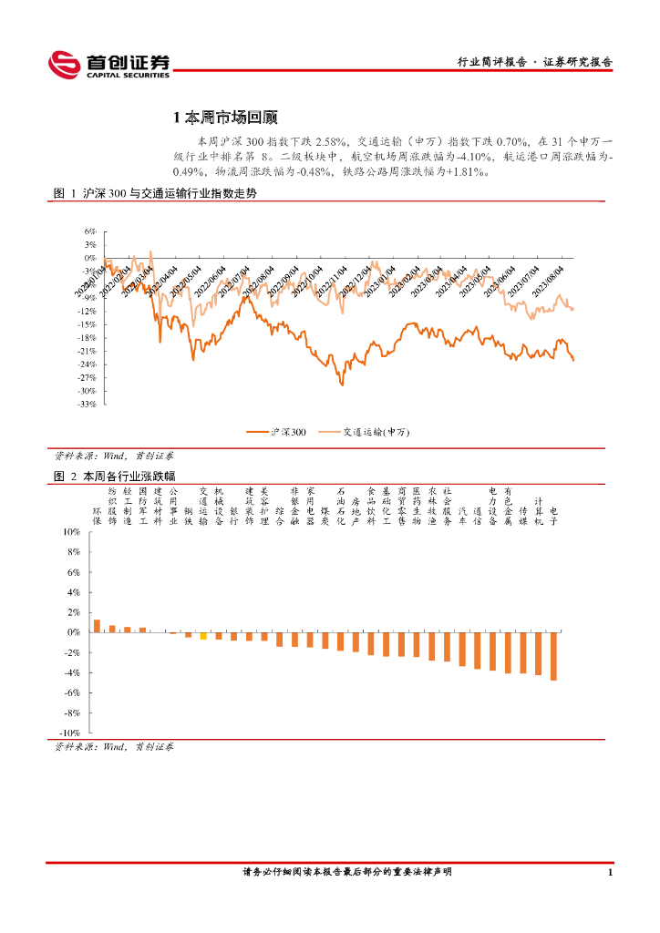 首创证券:交通运输周报:航司披露7月经营数据,民航市场需求持续恢复.pdf