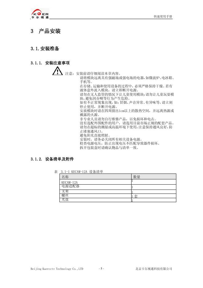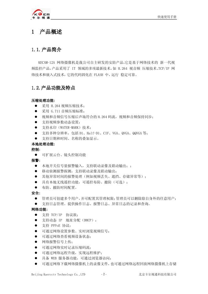 北京卡尔视通科技有限公司 KECAM-12A 网络摄像机 快速使用手册.pdf