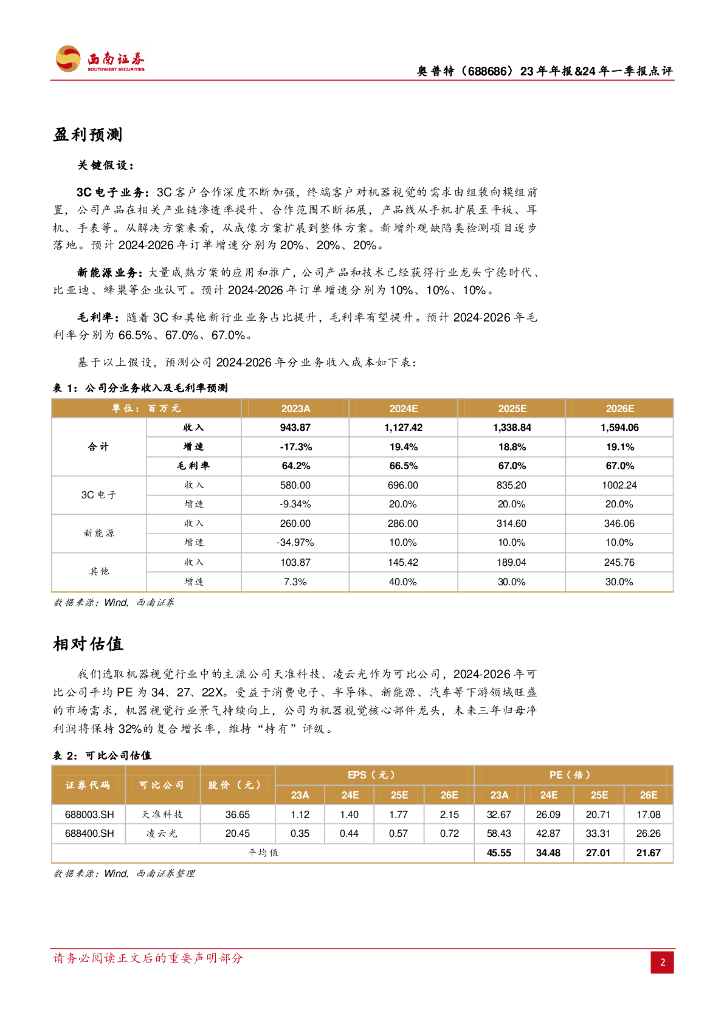 西南证券:奥普特(688686)-2024Q1业绩下降幅度收窄,毛利率环比提升.pdf
