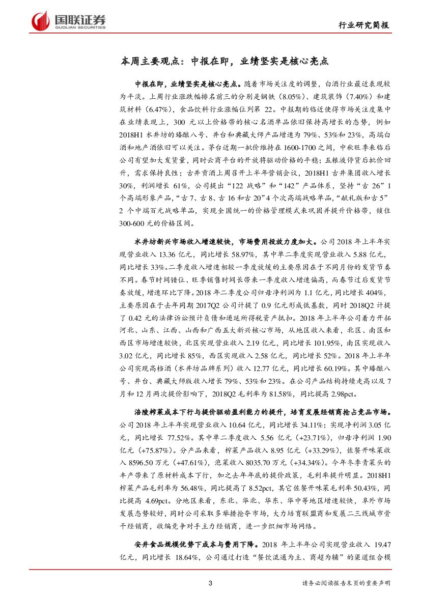 国联证券:食品饮料行业2018年第29期:中报在即,业绩坚实是核心亮点.pdf