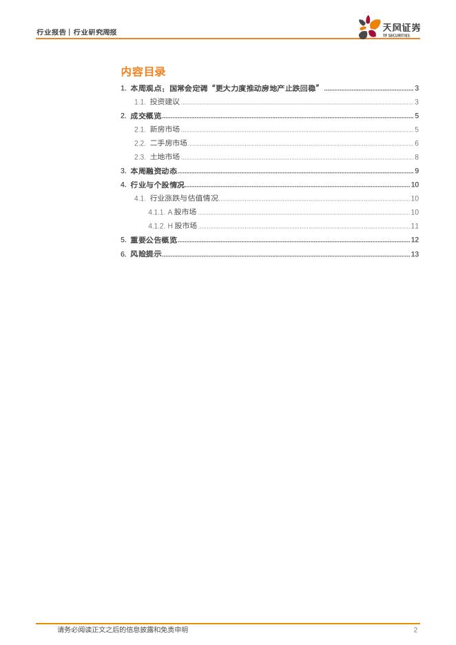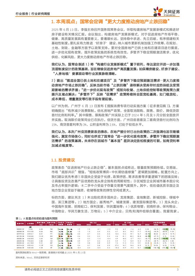 天风证券:房地产行业研究周报:国常会定调“更大力度推动房地产止跌回稳”.pdf