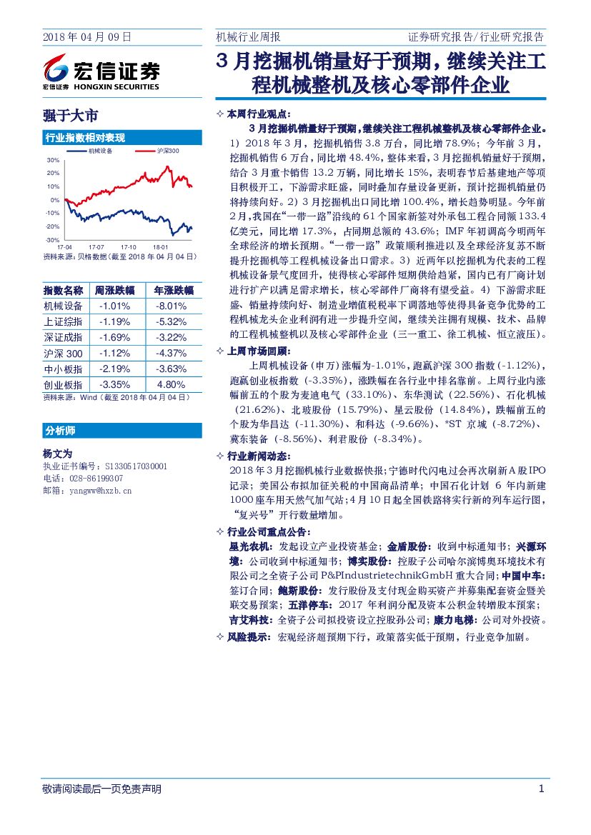 宏信证券:机械行业周报:3月挖掘机销量好于预期,继续关注工程机械整机及核心零部件企业.pdf