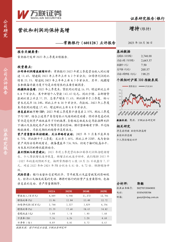 万联证券:常熟银行(601128)-点评报告:营收和利润均保持高增.pdf