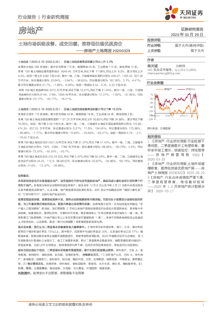 天风证券:房地产行业土地周报:土地市场供给改善,成交回暖,推荐低估值优质房企.pdf