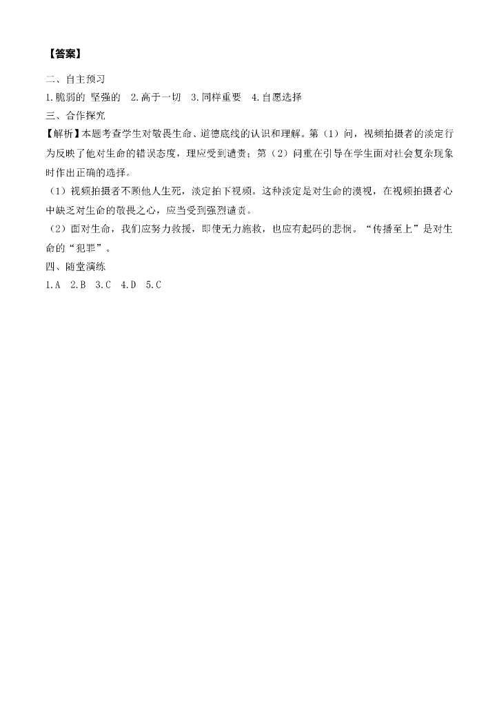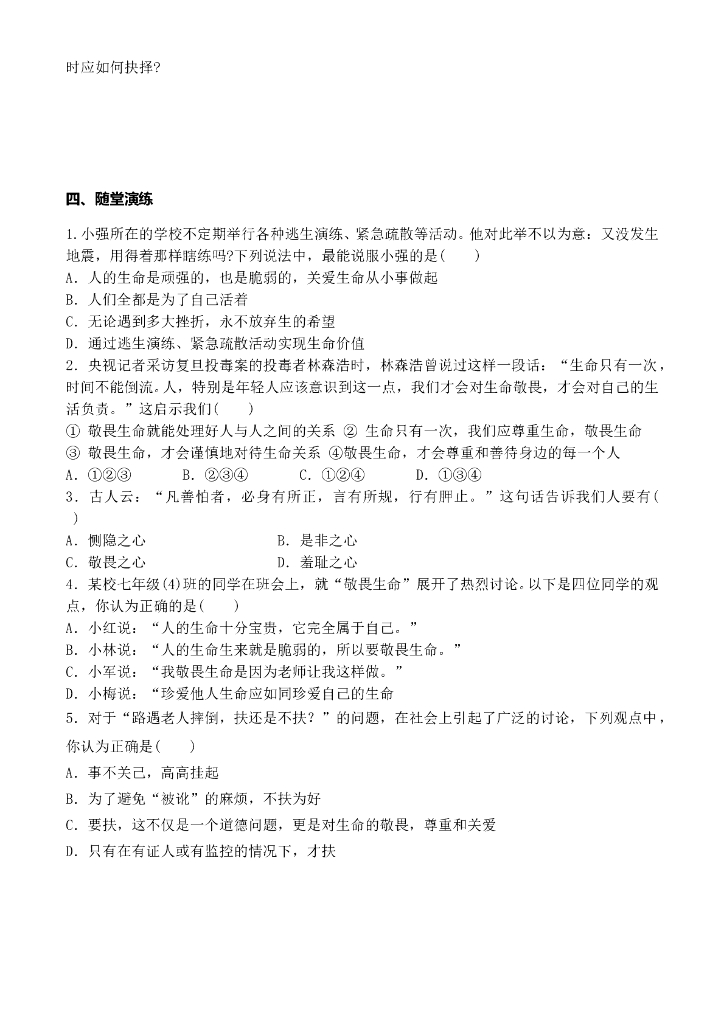 七年级上册 初中道德与法治第2课时 敬畏生命.doc