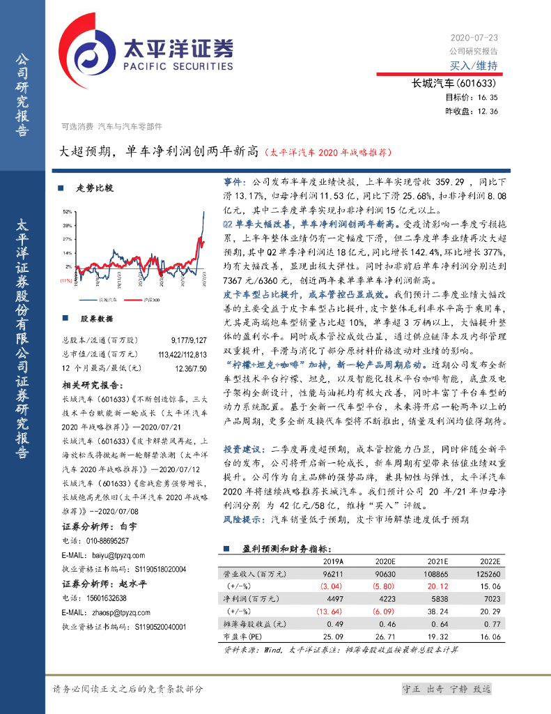 太平洋证券:长城汽车(601633)-大超预期,单车净利润创两年新高(太平洋汽车2020年战略推荐).pdf