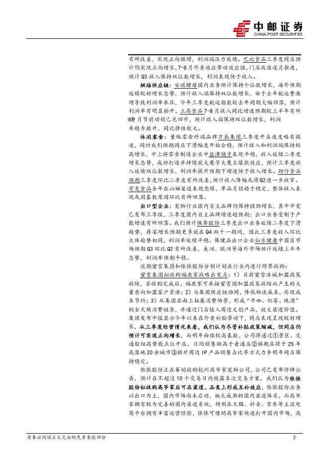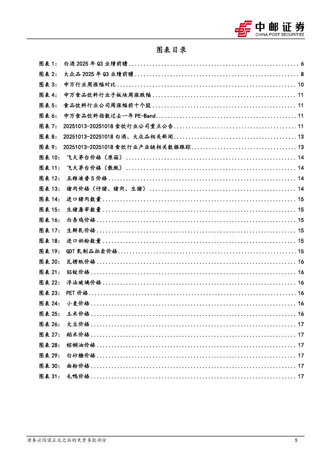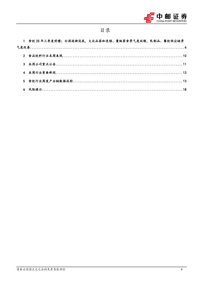 中邮证券:食品饮料行业周报-食品饮料2025年三季度前瞻:白酒逐渐筑底,大众品茶咖连锁、量贩零食景气度延续,乳制品、餐饮供应链景气度改善.pdf
