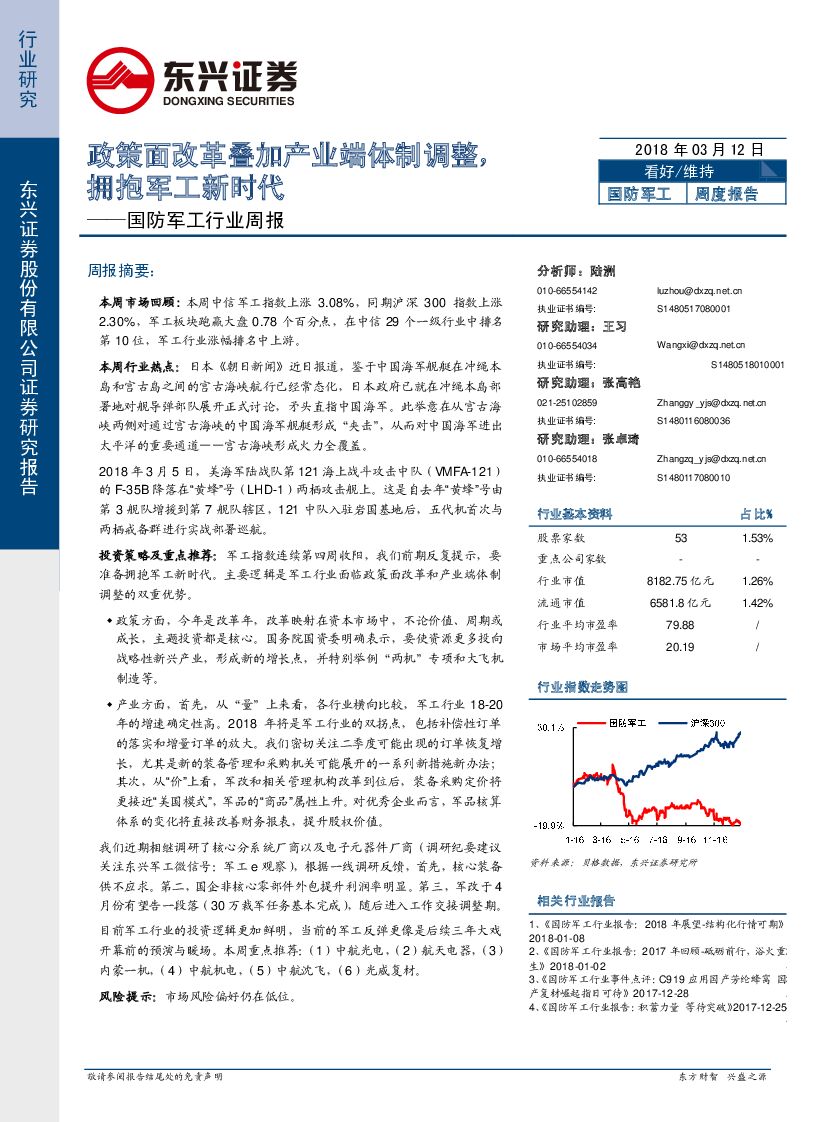 东兴证券:国防军工行业周报:政策面改革叠加产业端体制调整,拥抱军工新时代.pdf