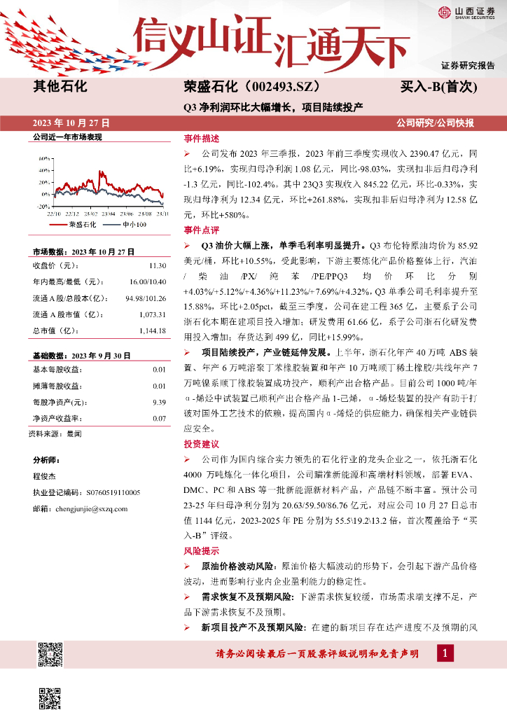山西证券:荣盛石化(002493)-Q3净利润环比大幅增长,项目陆续投产.pdf