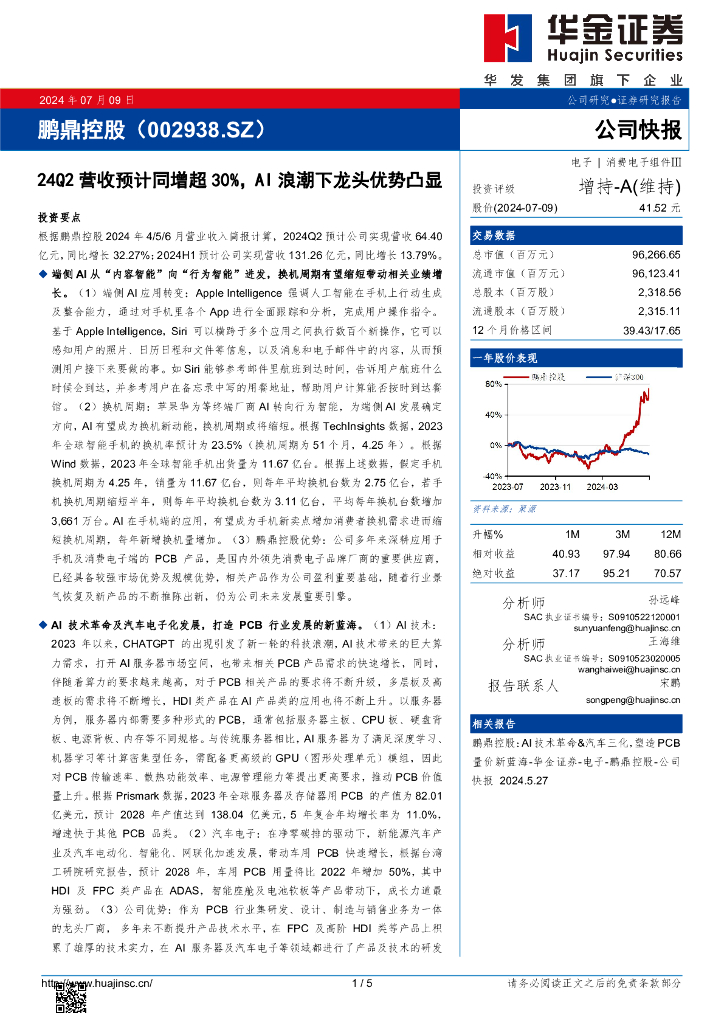 华金证券:鹏鼎控股(002938)-24Q2营收预计同增超30%,AI浪潮下龙头优势凸显.pdf