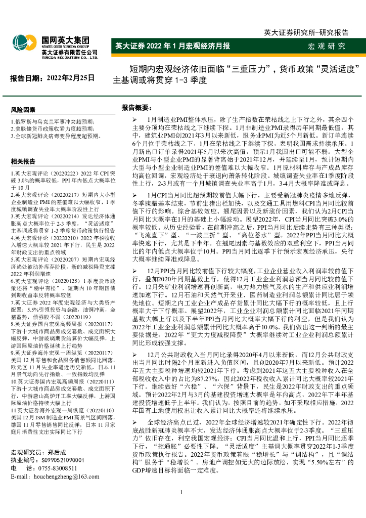 英大证券:2022年1月宏观经济月报:短期内宏观经济依旧面临“三重压力”,货币政策“灵活适度”主基调或将贯穿1-3季度.pdf