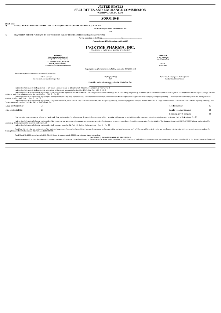 Inozyme Pharma(INZY)2021财年年度报告(英文版).pdf