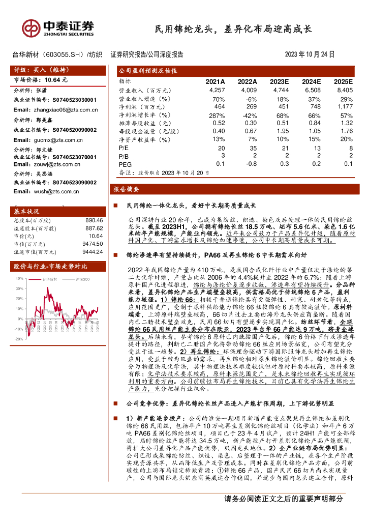 中泰证券:台华新材(603055)-民用锦纶龙头,差异化布局迎高成长.pdf