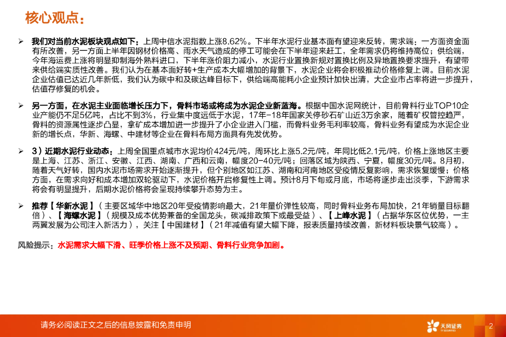 天风证券:水泥制造行业研究周报:旺季涨价开启,下半年弹性可期.pdf