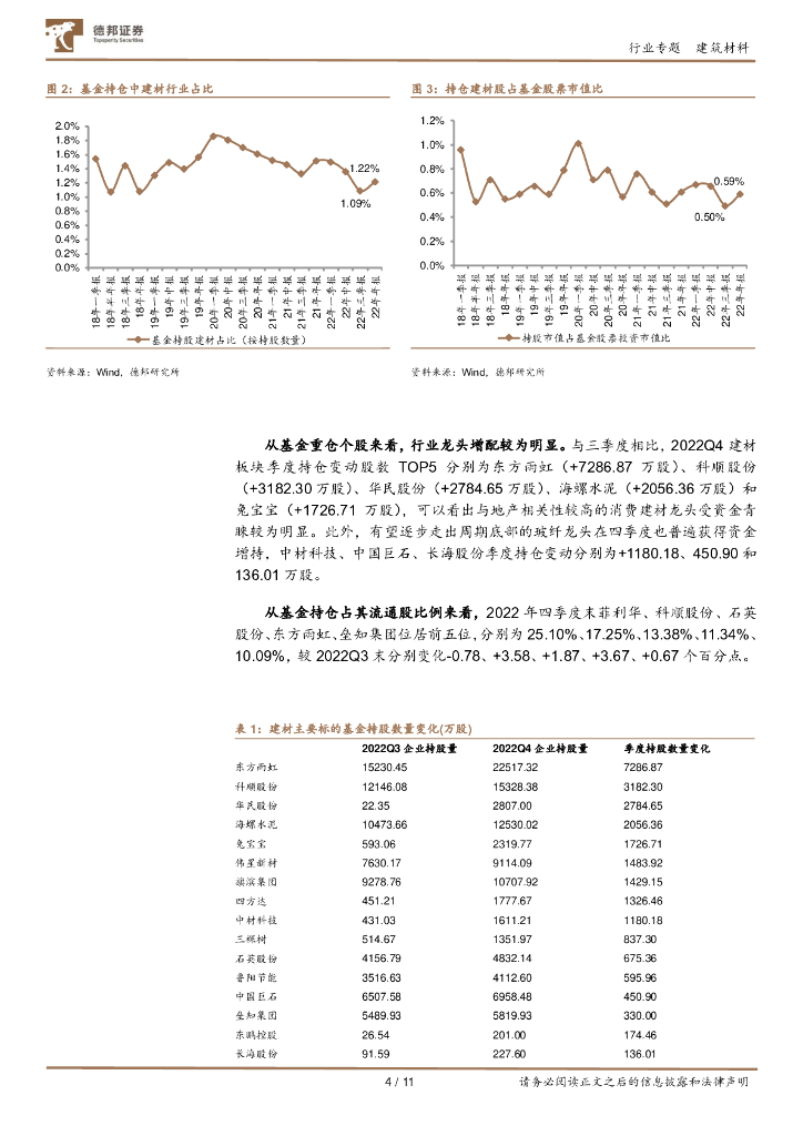 德邦证券:建筑材料行业专题:基金持仓分析-22Q4建材获基金增持,持仓迎来触底反弹.pdf