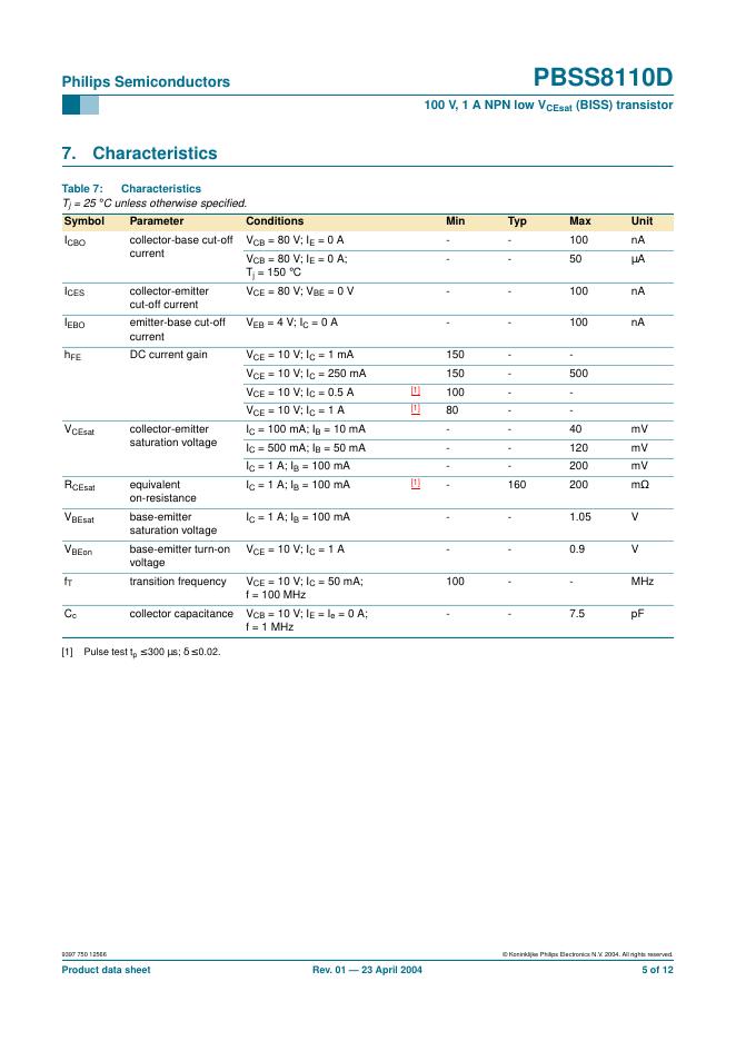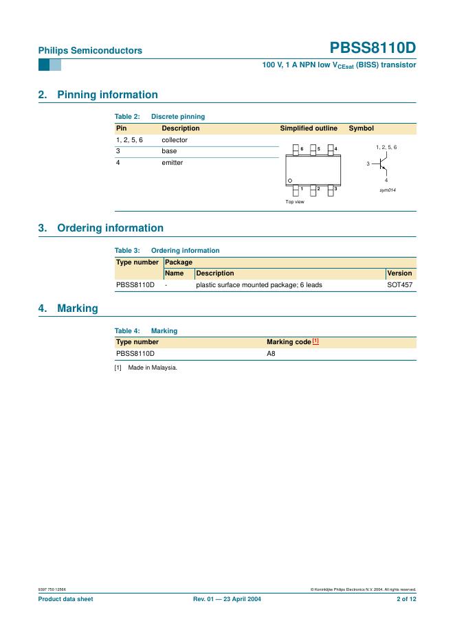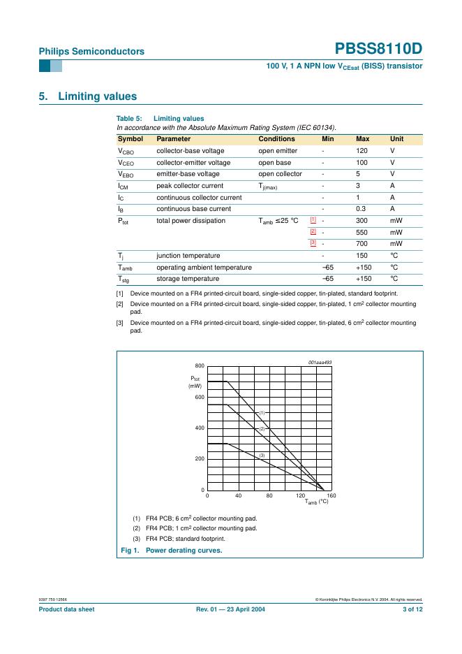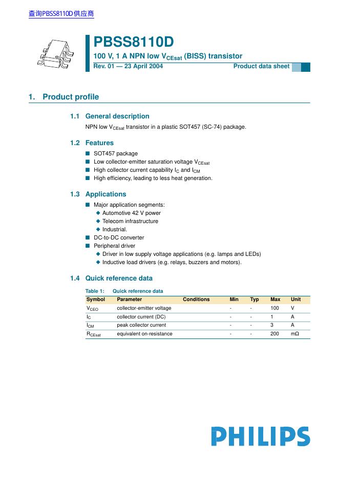 philips PBSS8110D 100 V, 1 A NPN low VCEsat (BISS) transistor 数据手册.pdf