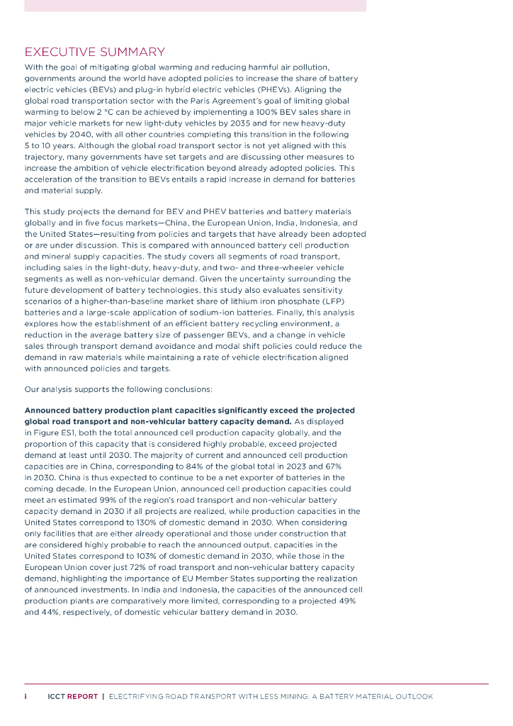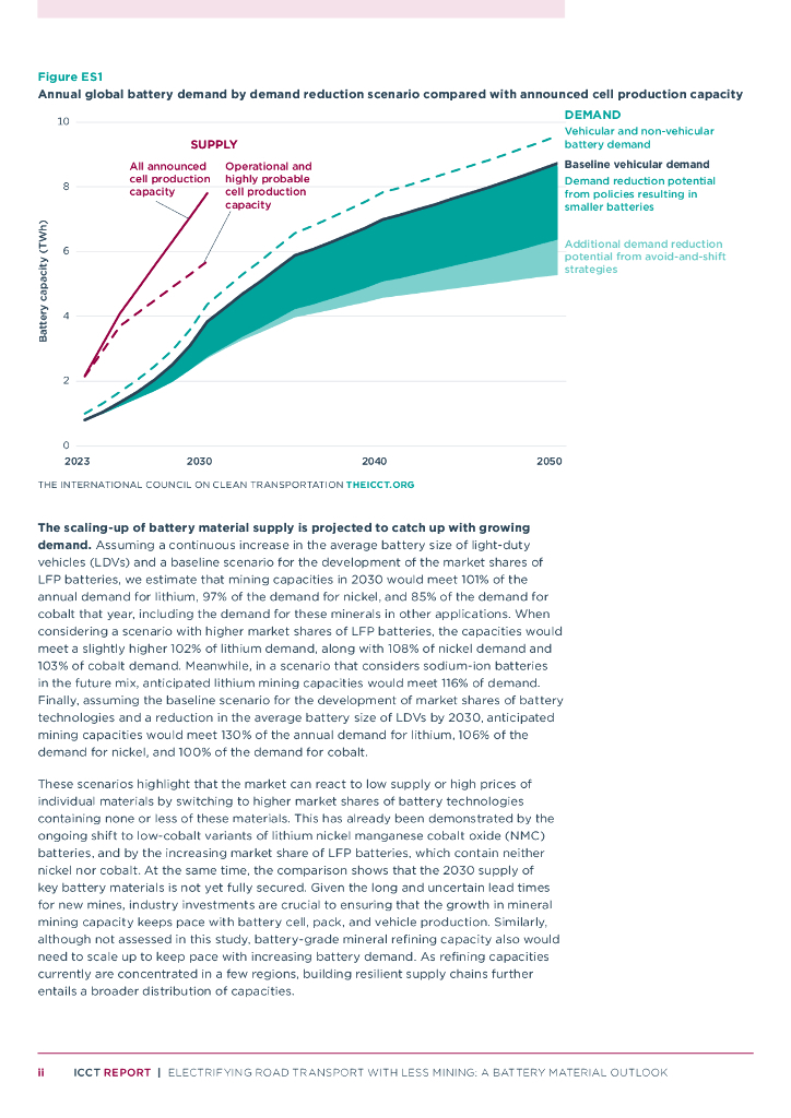 国际清洁运输理事会:2024年全球与区域电池材料展望报告:实现交通电动化与减少资源开采并行不悖(英文版).pdf