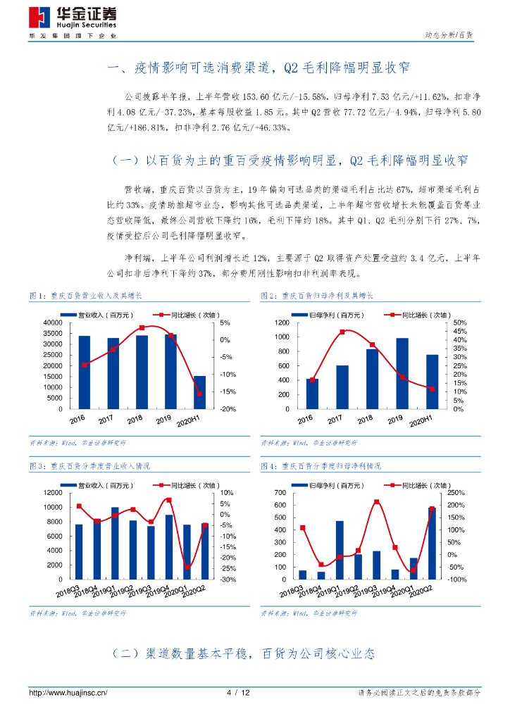 华金证券:重庆百货(600729)-疫情影响可选消费渠道,Q2毛利降幅明显收窄.pdf