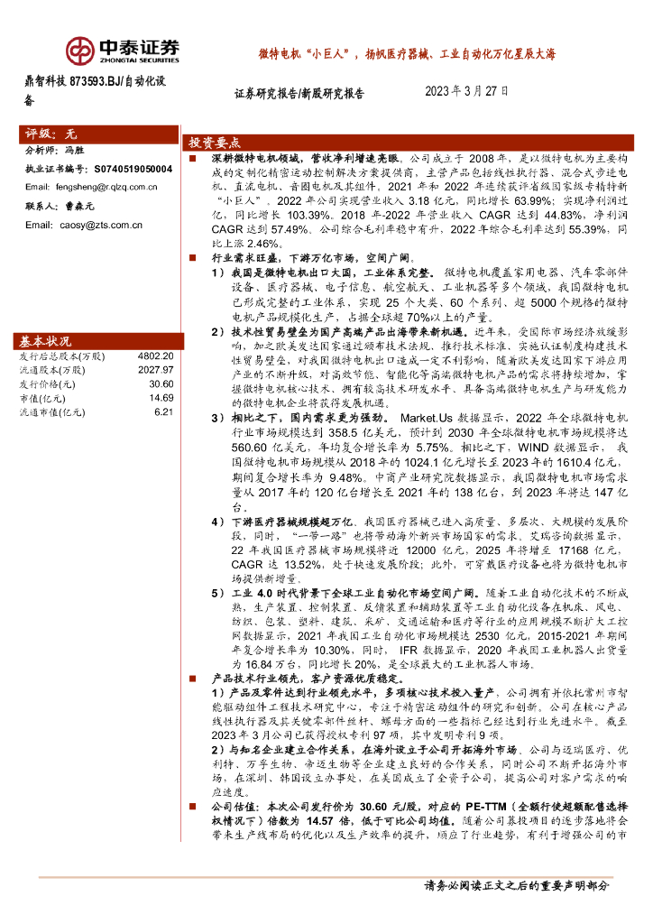 中泰证券:鼎智科技(873593)-微特电机“小巨人”,扬帆医疗器械、工业自动化万亿星辰大海.pdf