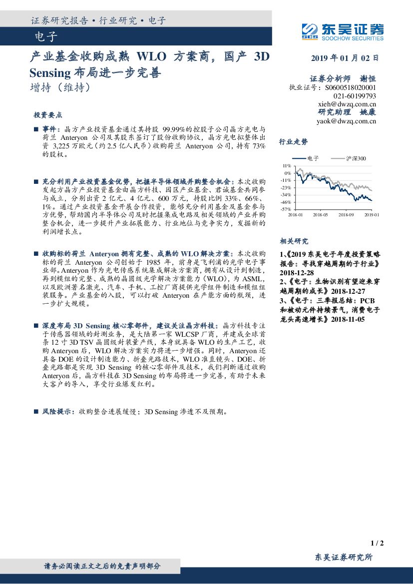东吴证券:电子:产业基金收购成熟WLO方案商,国产3D Sensing布局进一步完善.pdf