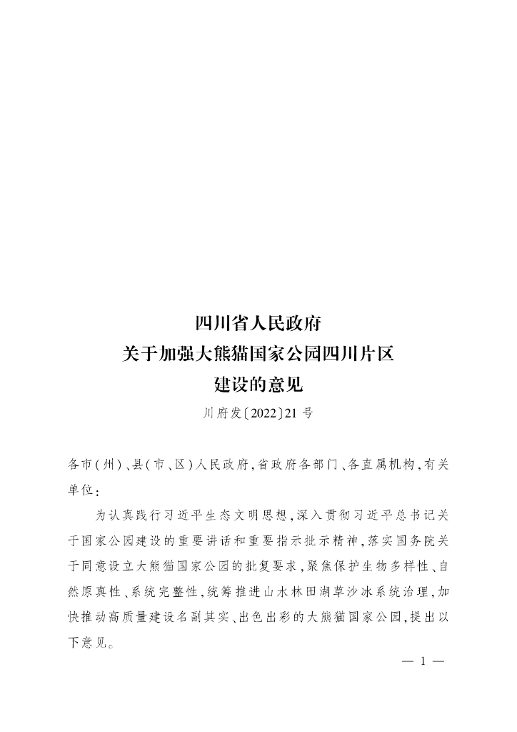 四川省人民政府关于加强大熊猫国家公园四川片区建设的意见.pdf