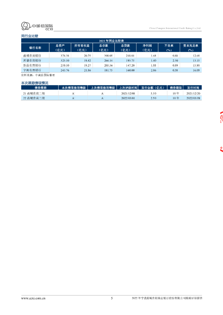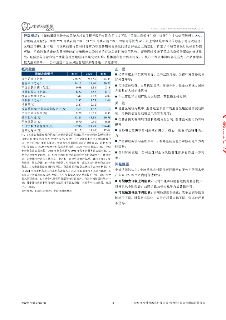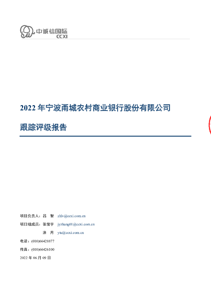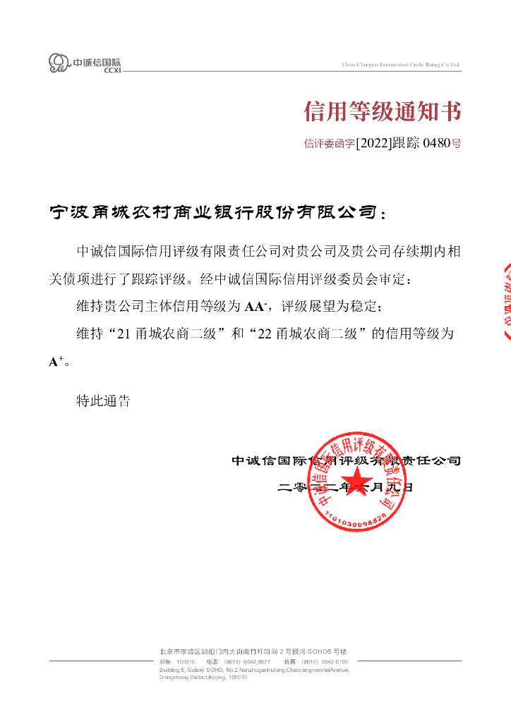 中诚信:2022年宁波甬城农村商业银行股份有限公司跟踪评级报告.pdf