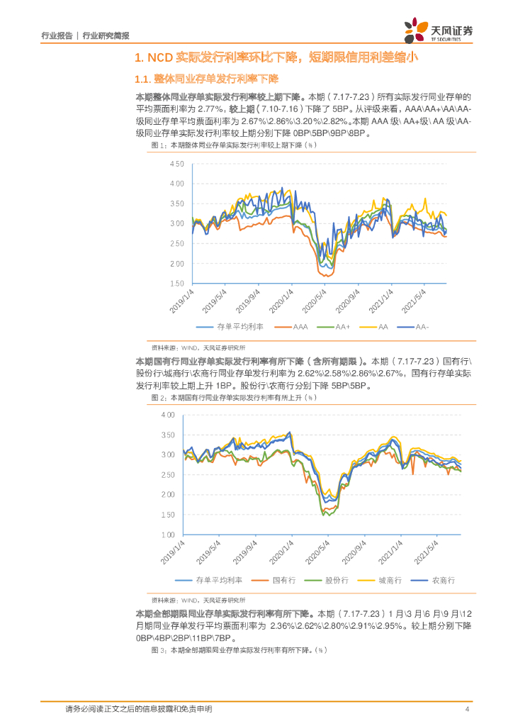 天风证券:银行债务融资周报:NCD发行利率再降,净融资额下降.pdf