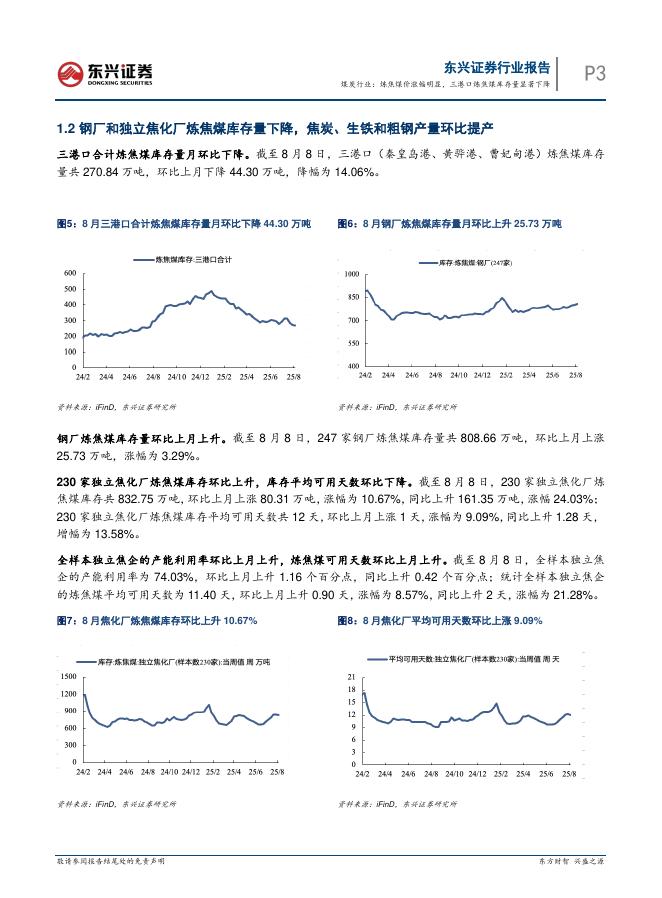 东兴证券:煤炭行业:炼焦煤价涨幅明显,三港口炼焦煤库存量显著下降.pdf