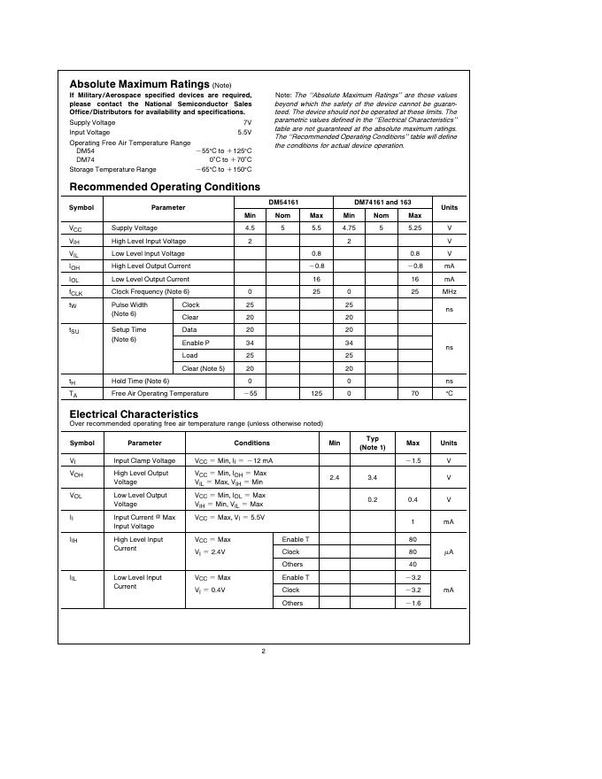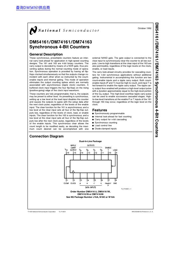 National Semiconductor DM54161/DM74161/DM74163 Synchronous 4-Bit Counters 数据手册.pdf